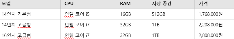 가격은 선택한 사양에 따라 다르며, 사용자의 필요에 맞게 선택할 수 있습니다