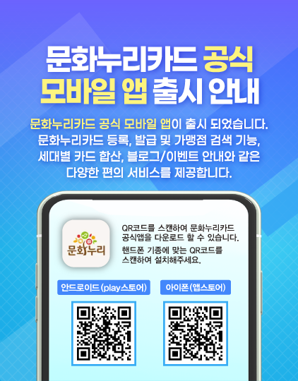 - 문화누리카드 앱 다운로드 후 회원가입.