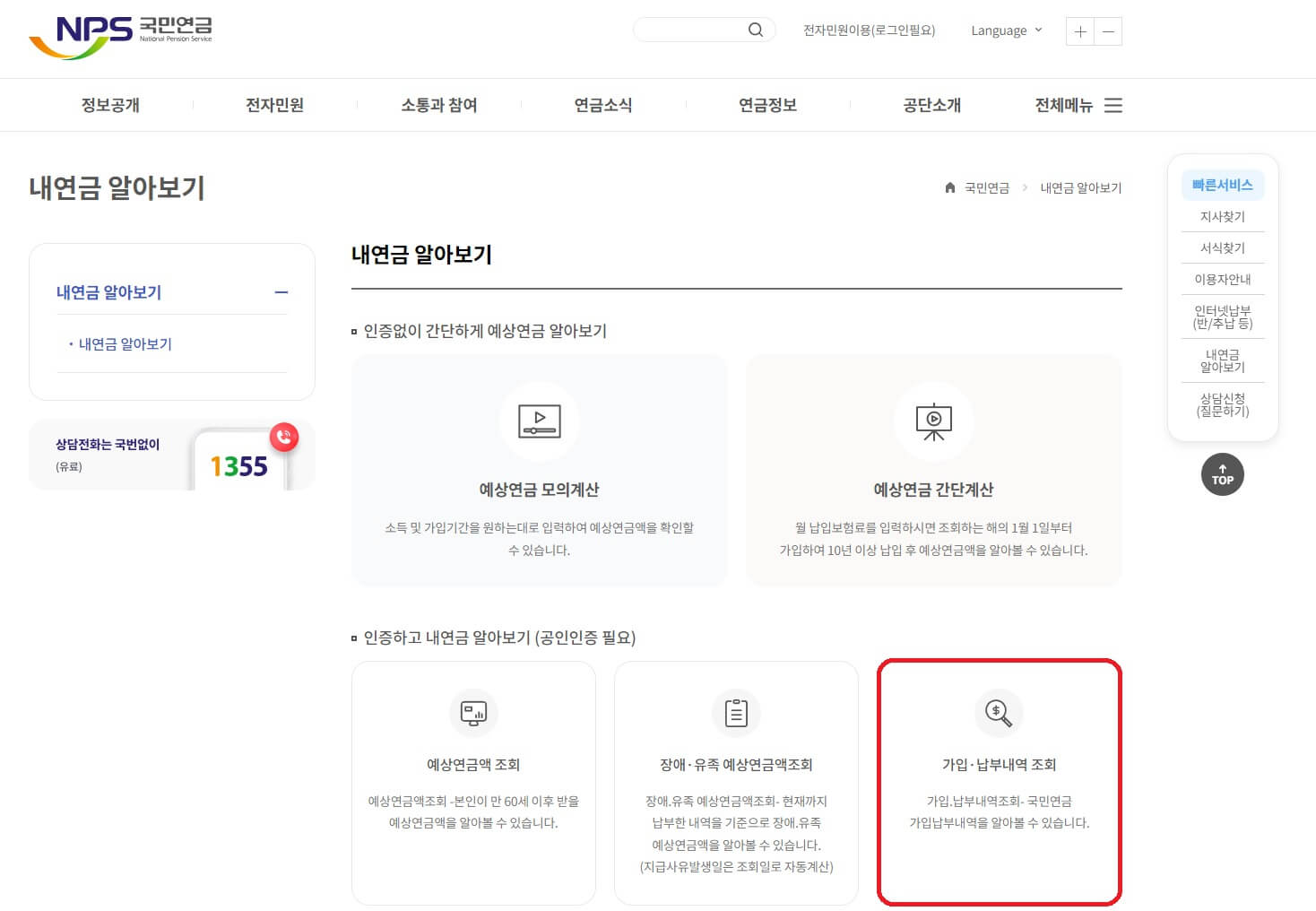 국민연금을 알아보기 위해서는 국민연금공단 홈페이지를 접속하셔야 합니다. 아래 링크는 누르시면 국민연금공단 홈페이지로 로 이동이 가능합니다.