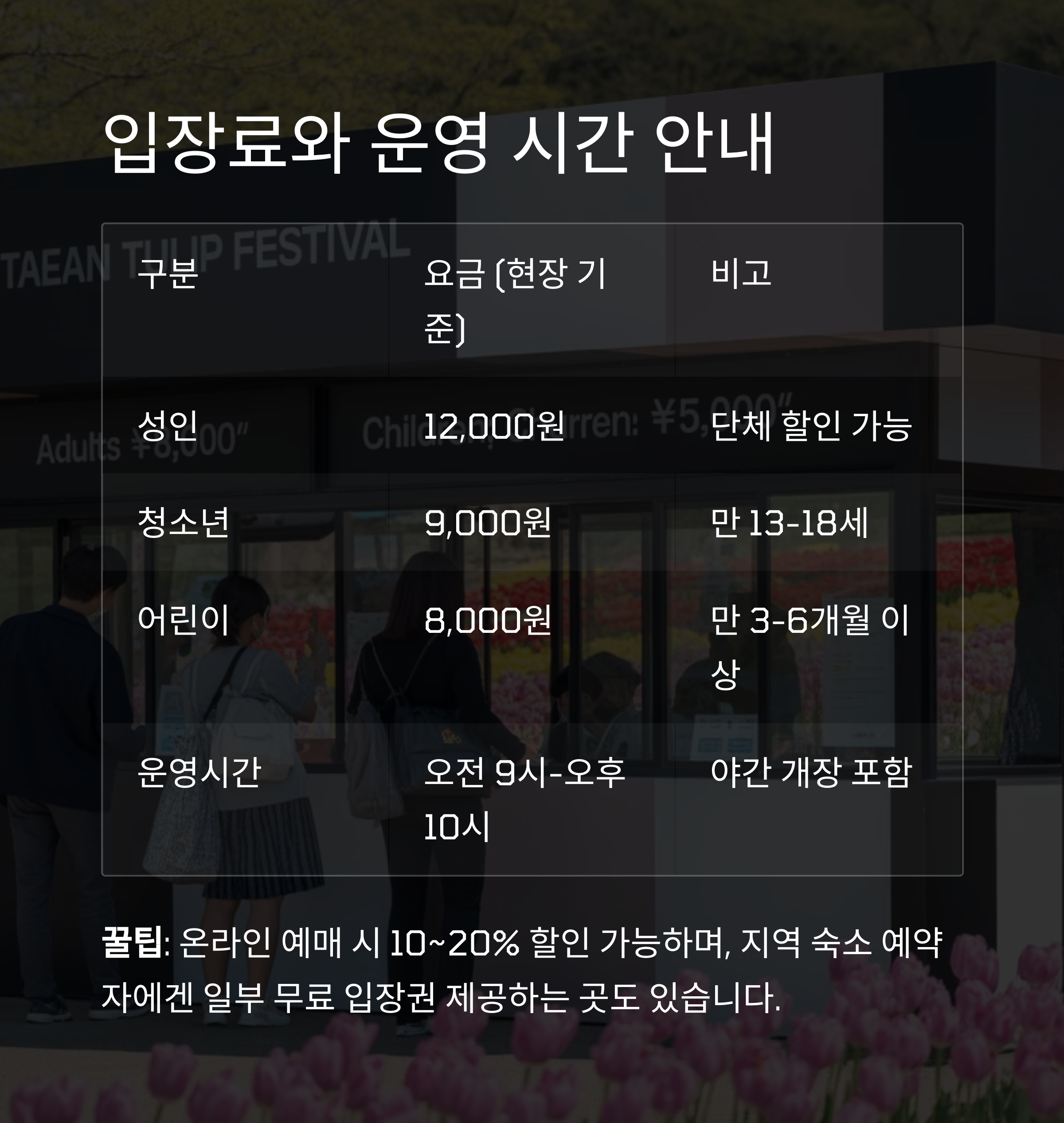꿀팁: 온라인 예매 시 10~20% 할인 가능하며,