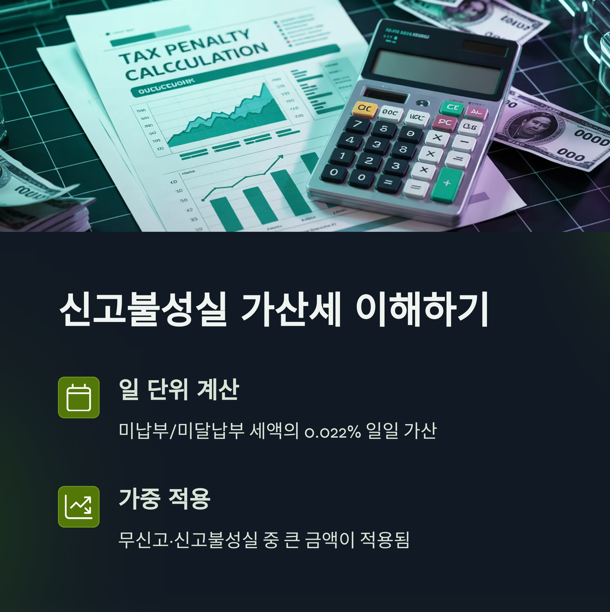 | 가산세율 | 20% 이상 | 경우에 따라 추가 발생 |