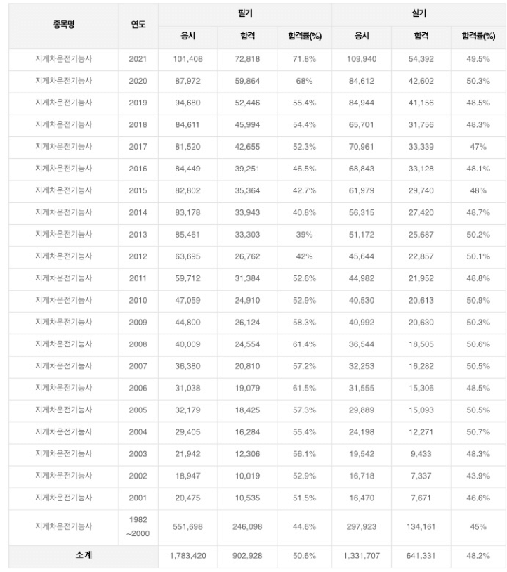 아래 사진을 보시다시피 필기합격률도 최근 70% 이상으로 안전을 최선의 상황판단을 기준으로 생각하고 시험에 응시하면 충분히 합격이 가능합니다.