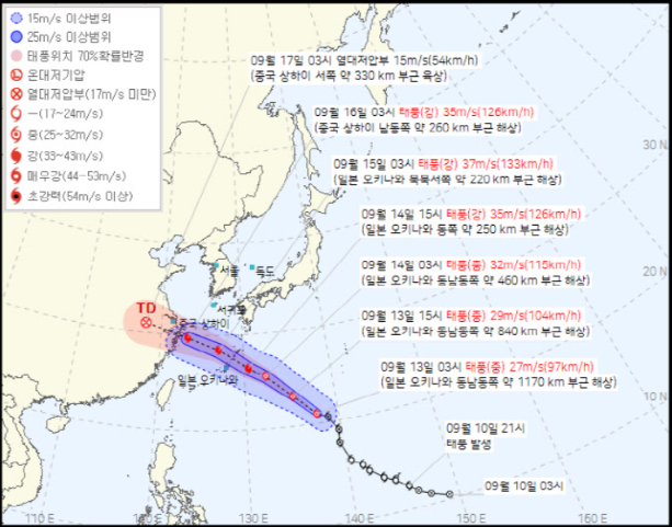 예상 경로로만 이동하게될 경우 우리나라에 직접적으로 큰 영향을 주지 않을 가능성이 높아 보이며, 제주와 남부 해상에는 간접적으로 영향을 줄것으로 보입니다.