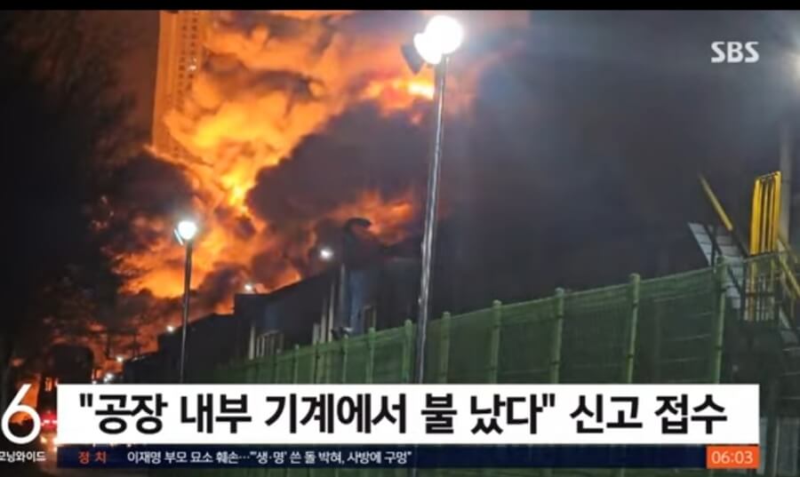 '내부 기계에서 불이 났다'라는 신고가 접수되고, 공장 관계자는 제2공장 12동 가류공정(반제품을 고온에 쪄서 완제품으로 만드는 과정)중에 타이어 성형 압출기계에서 불이 났다고 최초 신고했습니다.