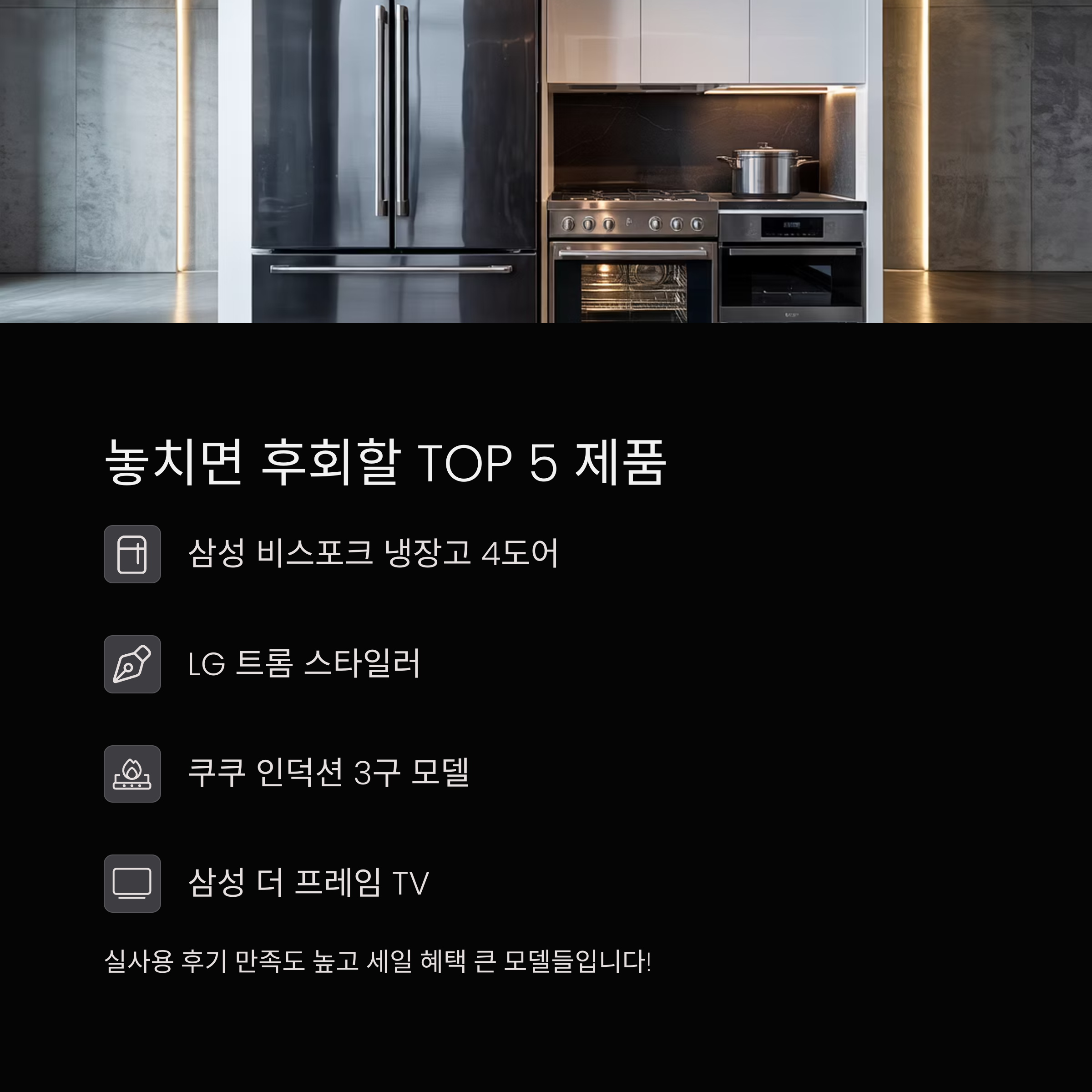 "실사용 후기에서 만족도가 높고, 이번 세일 혜택이 가장 큰 모델 위주로 선별했습니다."